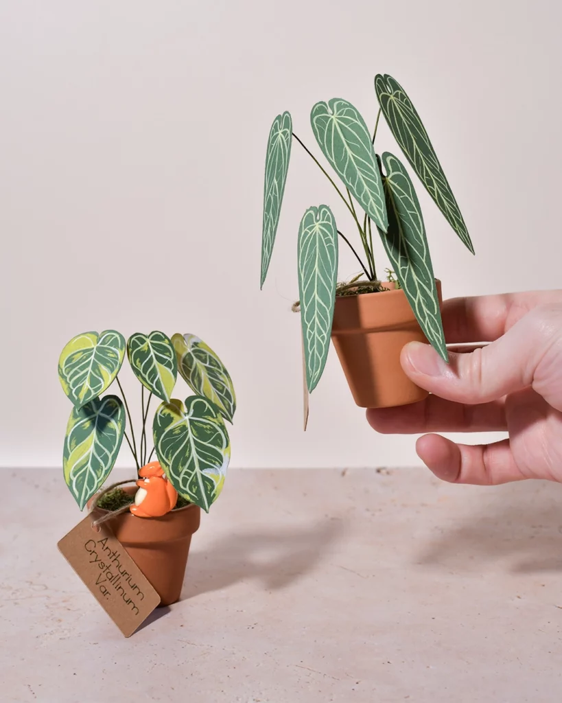 Une collection de mini plantes en papier, inspirée des espèces communes et rares, pensée pour les passionnés et pour celles et ceux qui aiment les plantes sans avoir la main verte. Chaque pièce est dessinée, détaillée et assemblée à la main.