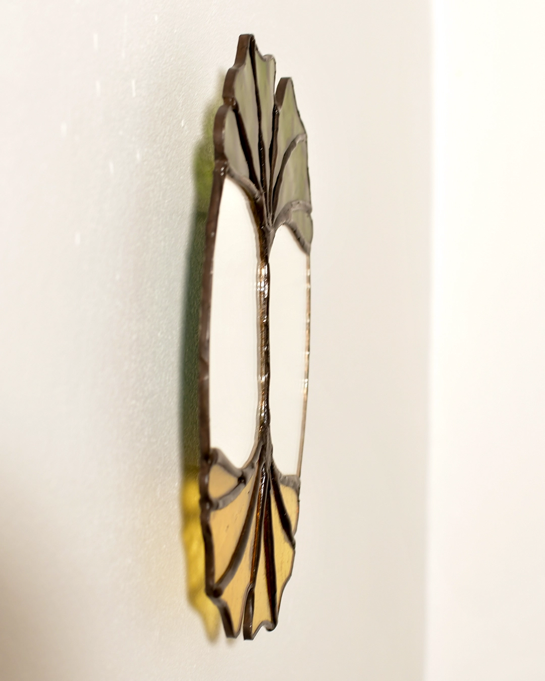 Ce miroir mural en vitrail Tiffany s’inscrit dans le thème du Memento Mori.