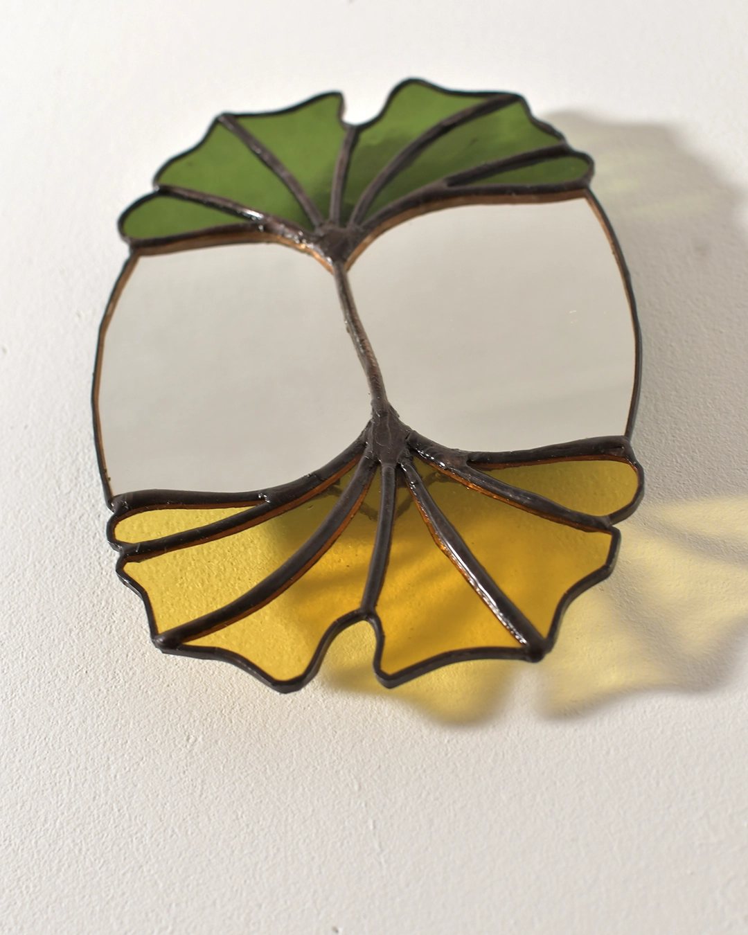 Le miroir Memento Mori s’inspire des feuilles de ginkgo biloba. Cet arbre, présent depuis la préhistoire, a survécu à Hiroshima et symbolise la longévité. Il incarne également la beauté à travers le temps.