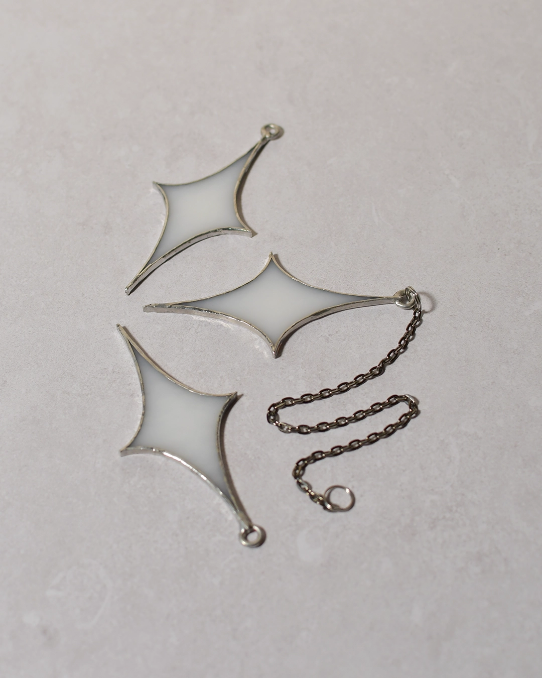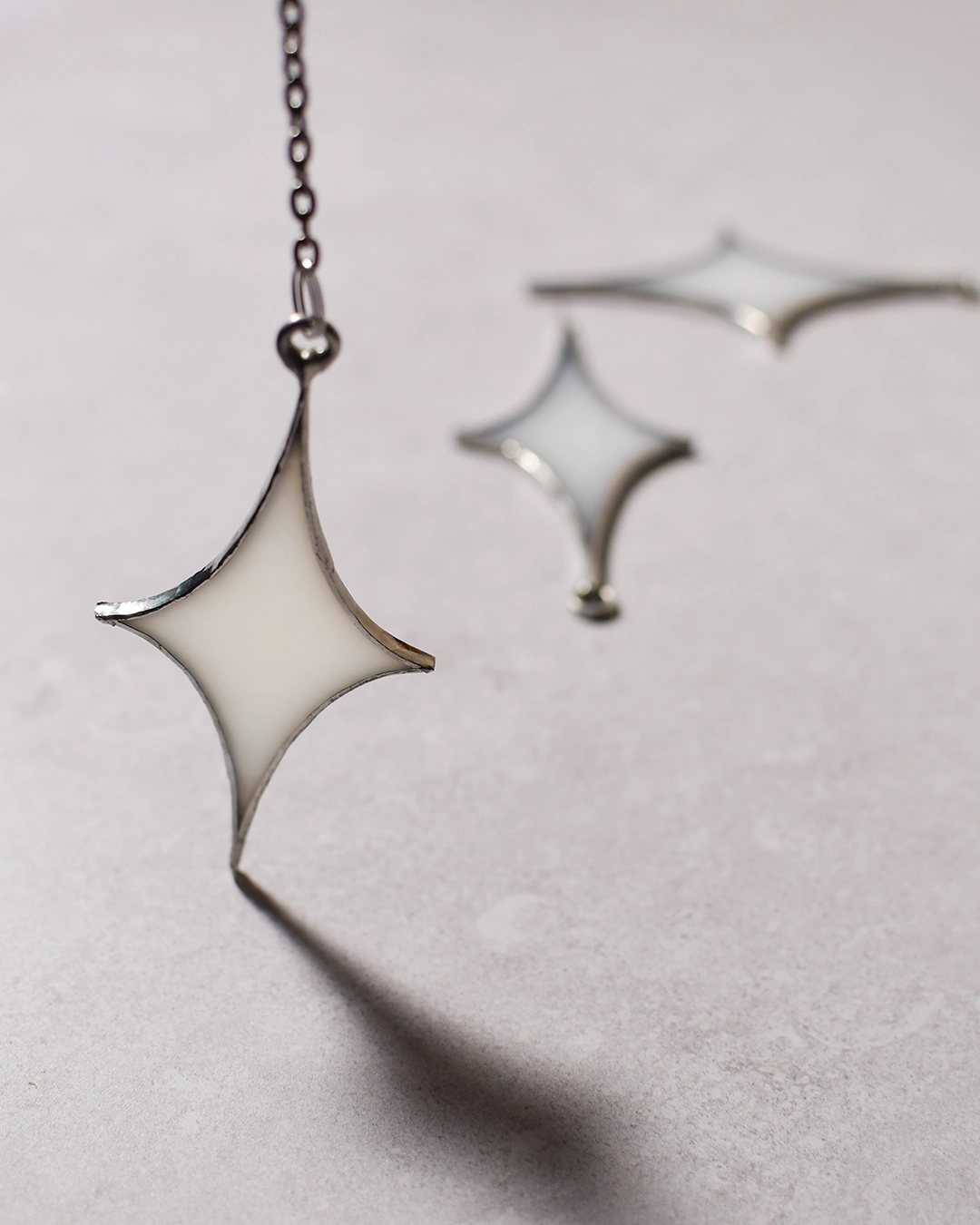 Cette suspension en vitrail traduit l’amour de Solnaë pour l’astronomie, mêlant beauté et mystère.