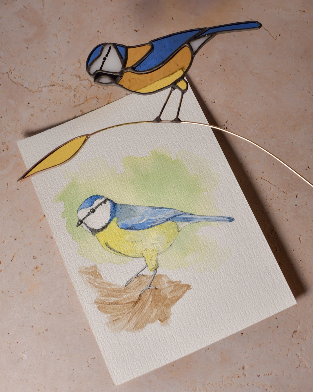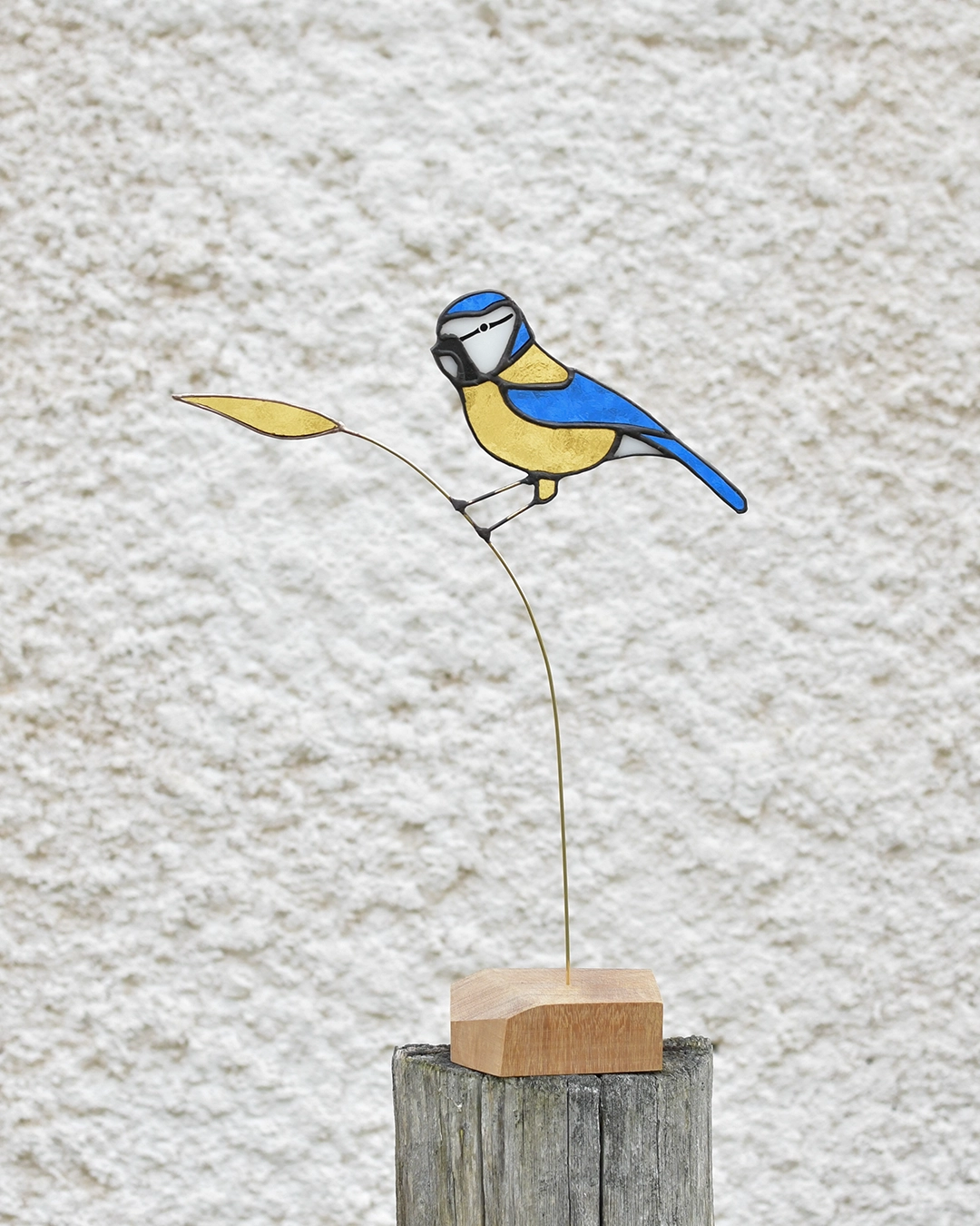 À travers cette pièce, j’ai cherché à capturer un instant fragile : celui où la mésange se pose, légère et attentive, avant de reprendre son envol. Un fragment de vie sauvage, sincère et sans artifice, figé dans la lumière du verre.